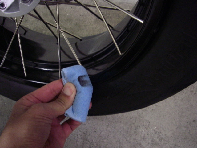 リムステッカー貼付け部の油分など汚れを徹底的に拭き取ります。