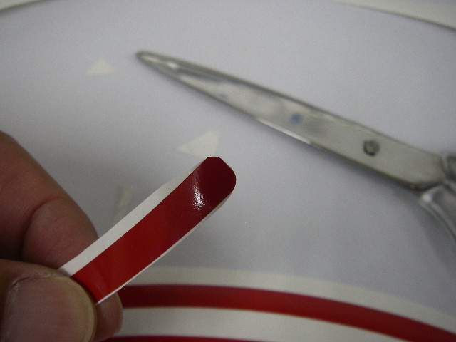 いよいよリムステッカーの貼り付け作業です。初めての作業だったので手元がプルプルしてしまいました(^^;