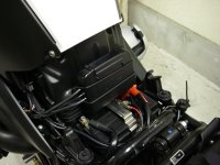ETC車載機本体はシート下のタンク側にある書類フォルダーにもともとからあるゴム輪を利用して固定して装着してあります。これまた定番位置ですが、ここの書類フォルダーってETC取付けの為にあるみたいでジャストフィットですね♪