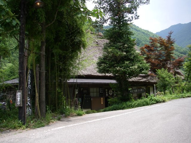 白川郷ICを降りた後、少し早めの昼食です。合掌集落からちょっと外れた川魚の料理屋「ます園 文助」さんです。
